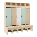 Regał szatniowy Montessi 6 osobowy z drzwiczkami - korpus buk