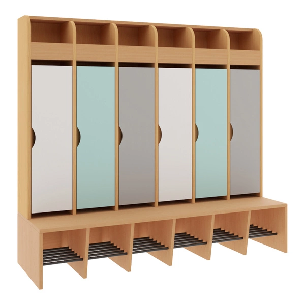 Regał szatniowy Montessi 6 osobowy z drzwiczkami - korpus buk