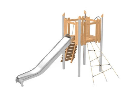 Kolekcja ROBINIO to ekskluzywna seria urządzeń stworzonych z myślą o wymagających użytkownikach. Ciekawe, trudne do pokonania wejścia, urozmaicone ścianki wspinaczkowe, nieoczywiste przejścia pobudzają do działania, planowania ruchów i zaangażowania w forsowaniu kolejnych przeszkód. Masywne, stalowe słupy konstrukcyjne, piękne, a zarazem trwałe drewno akacjowe o nietuzinkowym wyglądzie nadają kolekcji prestiżowego charakteru. - element konstrukcyjny kolekcji - okrągłe słupy z wysokiej jakości stali nierdzewnej montowane bezpośrednio w gruncie, zakończone unikalnymi osłonami z drewna akacjowego - robinii - wszystkie elementy drewniane wykonane z niezwykle trwałego drewna akacjowego - robinii, zabezpieczonego bezbarwnym środkiem ochronnym - zjeżdżalnie ze stali nierdzewnej - łączniki ze stali nierdzewnej - liny polipropylenowe z rdzeniem stalowym odporne na warunki atmosferyczne