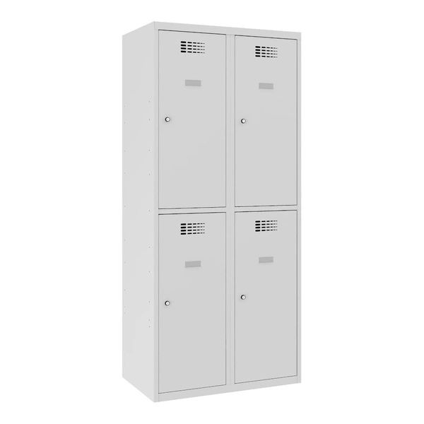 W szafkach z dwiema komorami w pionie każda komora wyposażona jest w drążek oraz dwa wieszaki na ubranie.