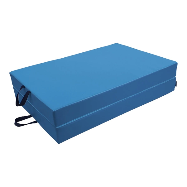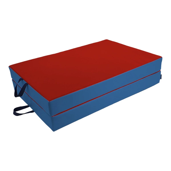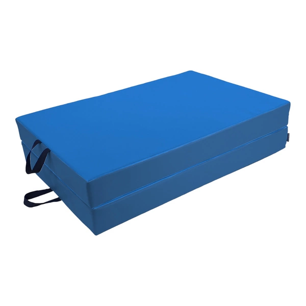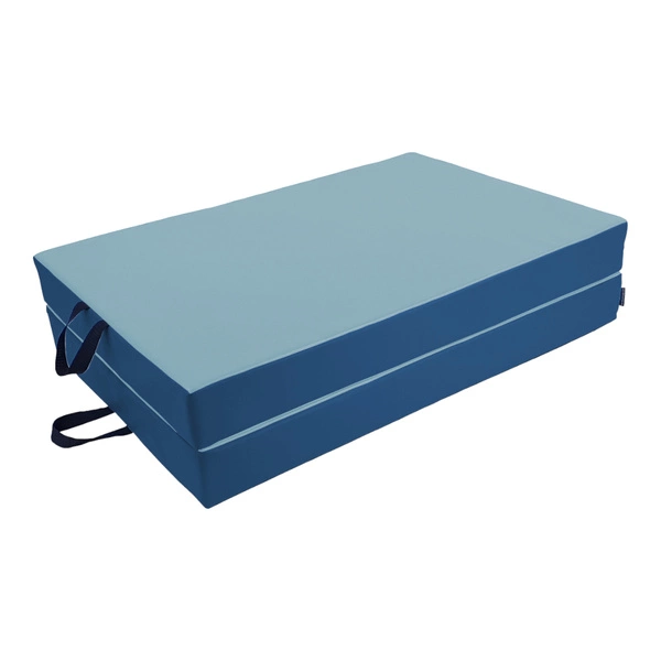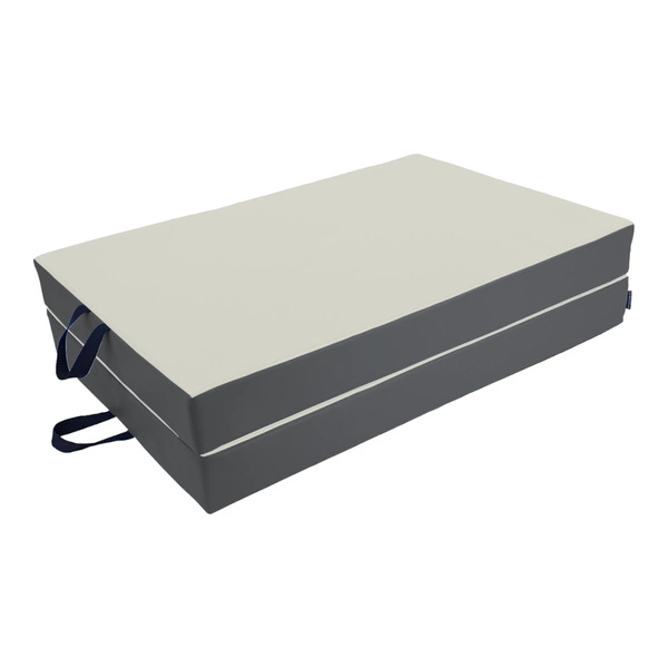 Materac 2-częściowy Twardy (R90) 180 x 60 x 5 cm - Prezentowany materac cechuje się wysoką twardością, wypełnienie to wtórnie spieniona twarda pianka R90 , która gwarantuje bezpieczeństwo podczas zajęć rehabilitacyjnych, treningu gimnastycznego, sportowego w tym sportów walki (rzuty, obalenia, trening parterowy).