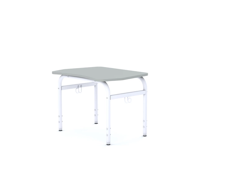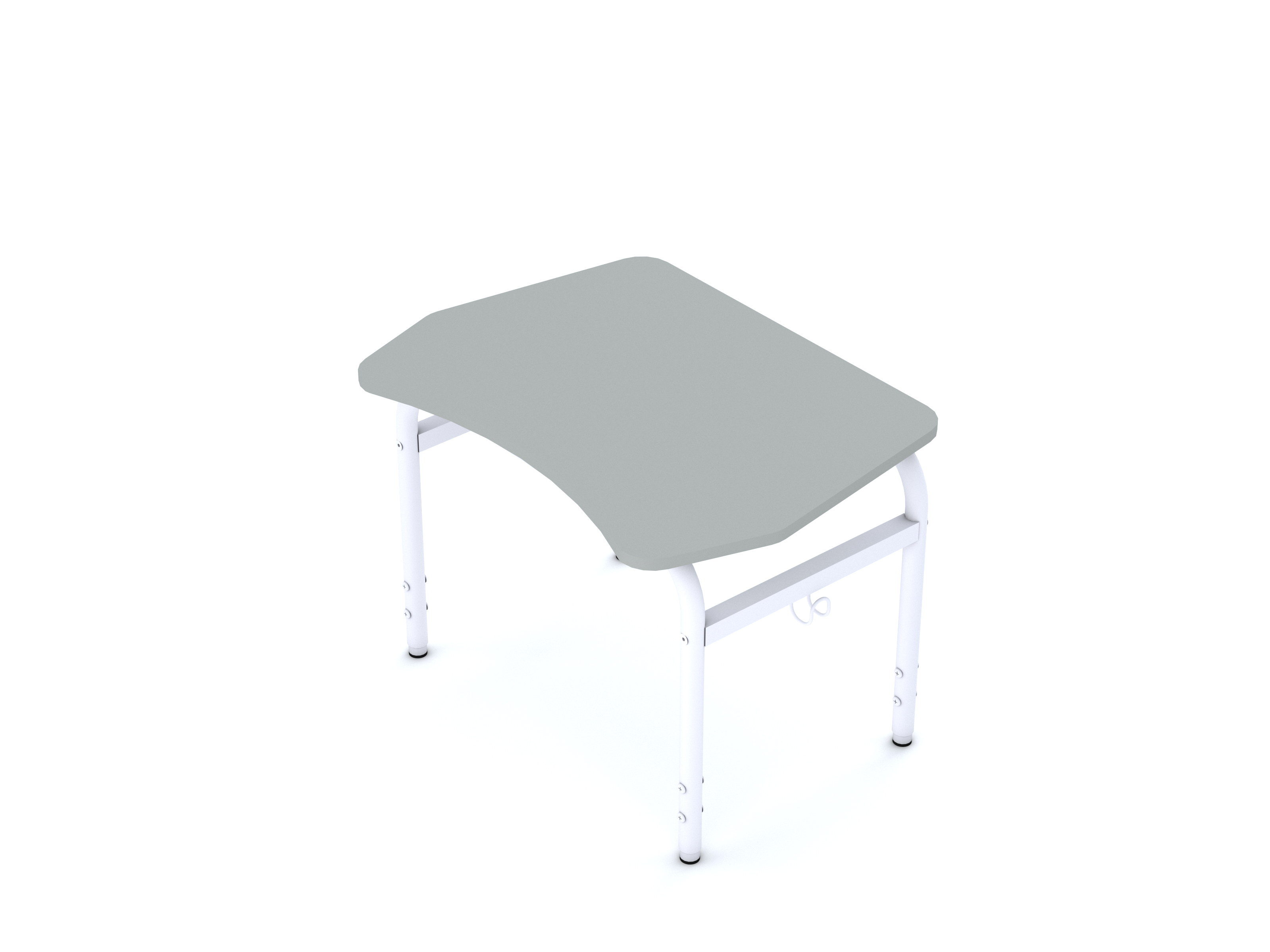 Stolik szkolny w kształcie fali, zapewniający uczniom odpowiednie miejsce do nauki, pisania i wykonywania innych czynności edukacyjnych. Wymiar blatu 750x500 mm. Blat wykonany z płyty melaminowanej o grubości 18 mm, posiadającej klasę higieniczności e1. Obrzeże blatu wykończone listwą PCV 2 mm. Blat połączony ze stelażem za pomocą metalowych śrub. Dostępny w 3 kolorach do wyboru (biały, szary, dąb kamienny). Stelaż metalowy z poprzeczką poziomą, wykonany ze stalowego profilu 32x1,5 mm gwarantujący stabilność i trwałość konstrukcji. Dostępny w kolorze szarym (RAL 9006) lub białym (9003). Zastosowanie haczyków po obu stronach ramy może służyć do zawieszania plecaków lub toreb. Stopki z tworzywa sztucznego w kolorze czarnym. Stolik dostępny w wersji regulowanej (rozmiary 2-4, rozmiary 4-6). Modułowa regulacja wysokości stelaża. Stolik posiada certyfikat zgodności z normą PN-EN 1729-1:2016-02 oraz PN-EN 1729-2+2016-02 wydany przez jednostkę certyfikującą posiadającą akredytację Polskiego Centrum Akredytacji.