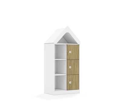 Regał Blox Base 70 3PP 3F1 z daszkiem 706x466x1575 korpus biały/3x front dąb - wariant 4