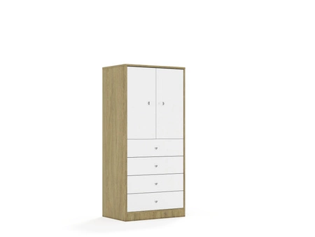 Mebel 1-kolumnowy posiadający 3 półki. Front wykonany z płyty melaminowanej o grubości 18 mm. Dostępne kolory: biały, szary, dąb kamienny. Zastosowane zawiasy Häfele Metalla 110 SM wpuszczane z hamulcem (cichy domyk) oraz prowadniki z systemem Clip Top, dzięki którym montaż i demontaż frontów odbywa się bez konieczności używania narzędzi. Plastikowy uchwyt w kolorze białym, osadzony w płycie meblowej. Jego płaska konstrukcja zapewnia większe bezpieczeństwo użytkowania. Mebel wyposażony w zamek, który zapewnia dodatkową ochronę i bezpieczeństwo przechowywanych przedmiotów. Szuflada wykonana z płyty melaninowanej o grubości 18 mm o klasie higeniczności E1. Dostępne kolory: biały, szary, dąb kamienny. Metalowe prowadnice z wysokogatunkowej stali, wyposażone w funkcję samodociągu, zapewniają trwałość, wytrzymałość oraz płynne i ciche zamykanie. Mechanizm automatycznie domyka szufladę po lekkim popchnięciu, gwarantując wygodę i bezszelestne użytkowanie. Plastikowy uchwyt w kolorze białym, osadzony w płycie meblowej. Jego płaska konstrukcja zapewnia większe bezpieczeństwo użytkowania.