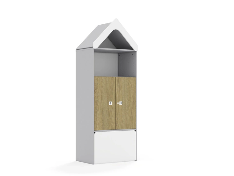 Wymiary zewnętrzne mebla wynoszą 706x466x1927. Mebel 1-kolumnowy posiadający 3 półki i daszek.