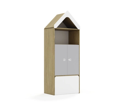 Regał Blox Base 70 4P 2F2 ze skrzynią i daszkiem 706x466x1927 korpus dąb/2x front szary
