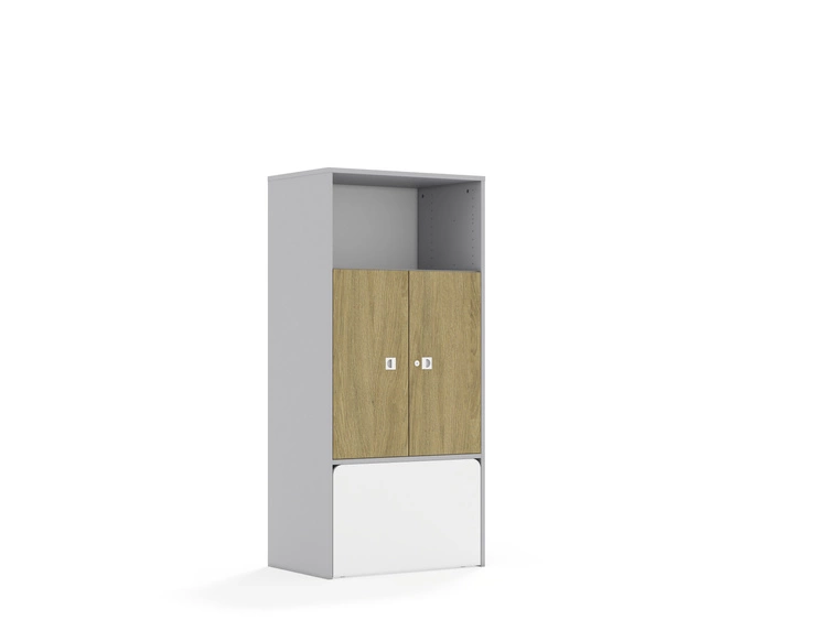 Regał Blox Base 70 4P 2F2 ze skrzynią 706x466x1517 korpus dąb/2x front szary