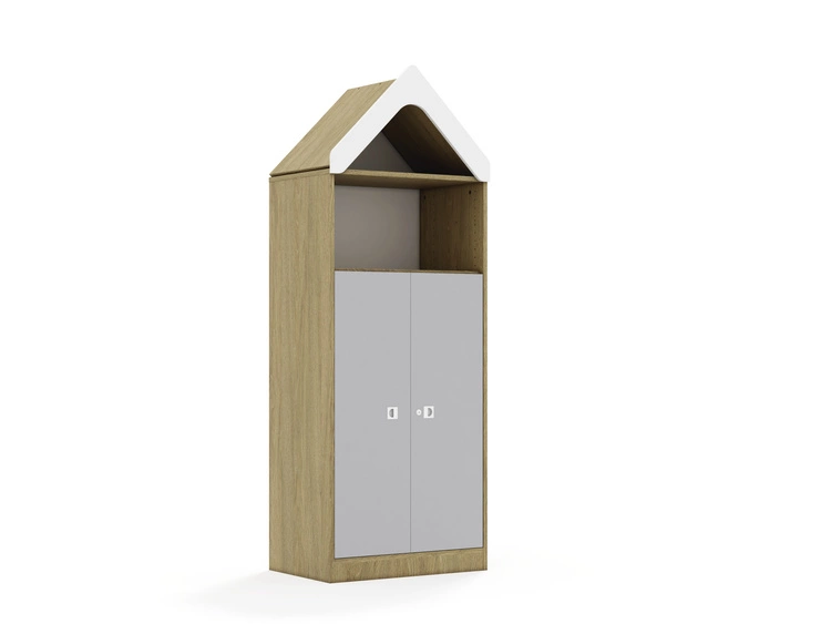 Korpus posiadający uniwersalne owiercenia umożliwiające zamontowanie półek na różnych wysokościach. Cokół w kolorze korpusu chroniący dolne krawędzie mebla przed uszkodzeniami i zabrudzeniami. Półki w kolorze korpusu wykonane z płyty melaminowanej o grubości 18 mm. Mocowanie półek za pomocą złącz RAFIX firmy Hafele. Montaż polegajacy na wsunięciu półki z góry w dół, podobnie jak przy tradycyjnych podpórkach. Wbudowany mechanizm mimośrodu dociągający półkę, zapewniający wysoką stabilność mebla. Stopki regulujące umożliwiające wypoziomowanie mebla. Stopki antypoślizgowe zabezpieczające podłogę przed zarysowaniem. Ściany tylne mebla wykonane z białej płyty HDF o grubości 3mm. Wpuszczane w nutę wykonaną w bokach oraz wieńcu górnym co nadaje stabilności meblom oraz sprawia, że wszelkie połączenia płyty hdf z meblem są niewidoczne. Dodatkowo HDF usztywniony jest punktowymi, również niewidocznymi plastikowymi stabilizatorami wkręconymi i wciśniętymi między płytę a nutę.