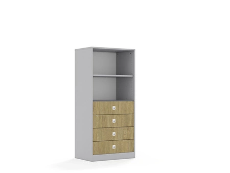 Regał Blox Base 70 4P 4S 706x466x1517 korpus szary/4x szuflada dąb