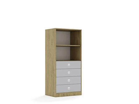 Regał Blox Base 70 4P 4S 706x466x1517 korpus dąb/4x szuflada szara