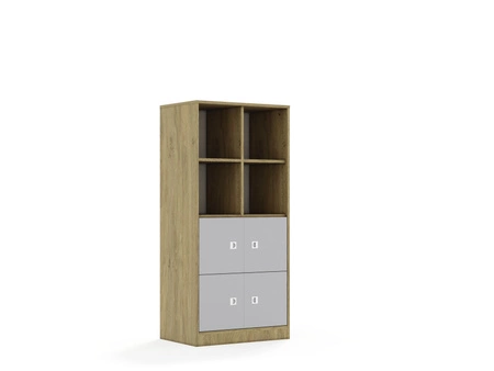 Regał Blox Base 70 4PP 4F1 706x466x1517 korpus dąb/4x front szary - wariant 1