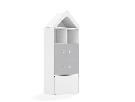 Regał Blox Base 70 4PP 4F1 ze skrzynią i daszkiem 706x466x1927 korpus biały/4x front szary