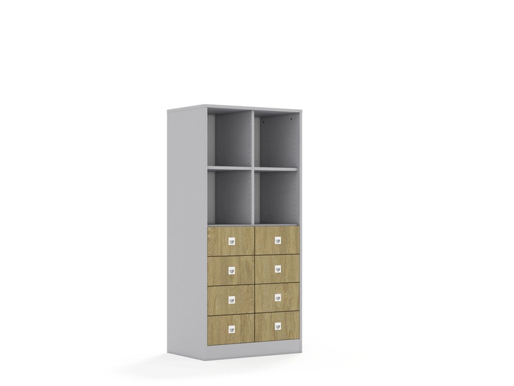 Regał Blox Base 70 4PP 8SB 706x466x1517 korpus szary/8x szuflada dąb