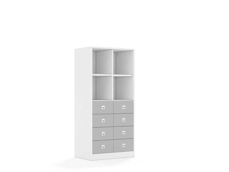 Regał Blox Base 70 4PP 8SB 706x466x1517 korpus biały/8x szuflada szara