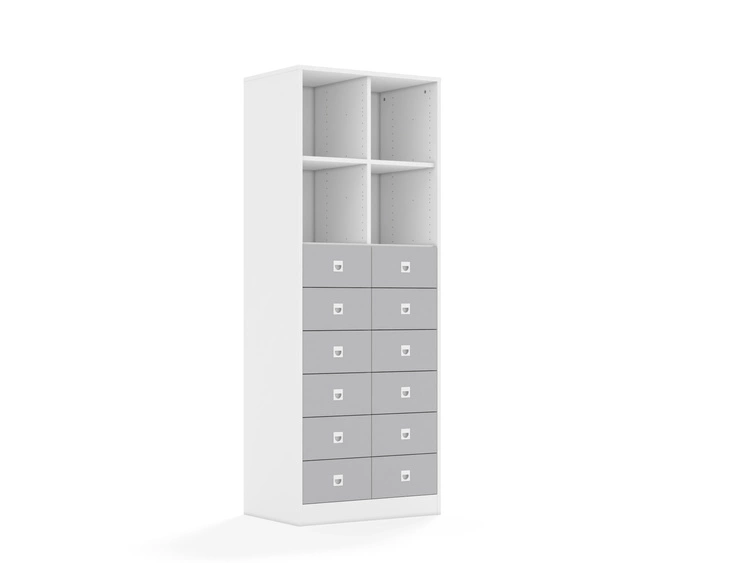 Regał Blox Base 70 5PP 12SB 706x466x1869 korpus biały/12x szuflada szara