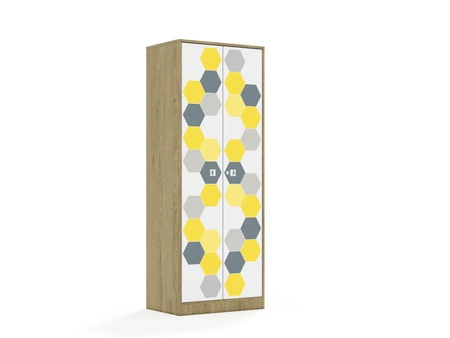 Kolekcja mebli szkolnych Hex to funkcjonalne i estetyczne rozwiązanie, idealne do każdej przestrzeni edukacyjnej. Fronty szafek i szuflad są w kolorze białym, ozdobione drukowanymi motywami połączonych sześciokątów, które dodają meblom nowoczesnego i dynamicznego wyglądu. Nadruki są dostępne w kolorach zielonych, czerwonych, niebiesko-fioletowych oraz szaro-żółtych, co pozwala na tworzenie interesujących i kolorowych aranżacji w przestrzeni szkolnej. Korpus posiadający uniwersalne owiercenia umożliwiające zamontowanie półek na różnych wysokościach. Cokół w kolorze korpusu chroniący dolne krawędzie mebla przed uszkodzeniami i zabrudzeniami. Półki w kolorze korpusu wykonane z płyty melaminowanej o grubości 18 mm. Mocowanie półek za pomocą złącz RAFIX firmy Hafele. Montaż polegajacy na wsunięciu półki z góry w dół, podobnie jak przy tradycyjnych podpórkach. Wbudowany mechanizm mimośrodu dociągający półkę, zapewniający wysoką stabilność mebla. Stopki regulujące umożliwiające wypoziomowanie mebla. Stopki antypoślizgowe zabezpieczające podłogę przed zarysowaniem. Ściany tylne mebla wykonane z białej płyty HDF o grubości 3mm. Wpuszczane w nutę wykonaną w bokach oraz wieńcu górnym co nadaje stabilności meblom oraz sprawia, że wszelkie połączenia płyty hdf z meblem są niewidoczne. Dodatkowo HDF usztywniony jest punktowymi, również niewidocznymi plastikowymi stabilizatorami wkręconymi i wciśniętymi między płytę a nutę.