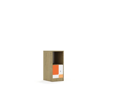 Mebel 1-kolumnowy posiadający 1 półkę. Front wykonany z płyty melaminowanej o grubości 18 mm.