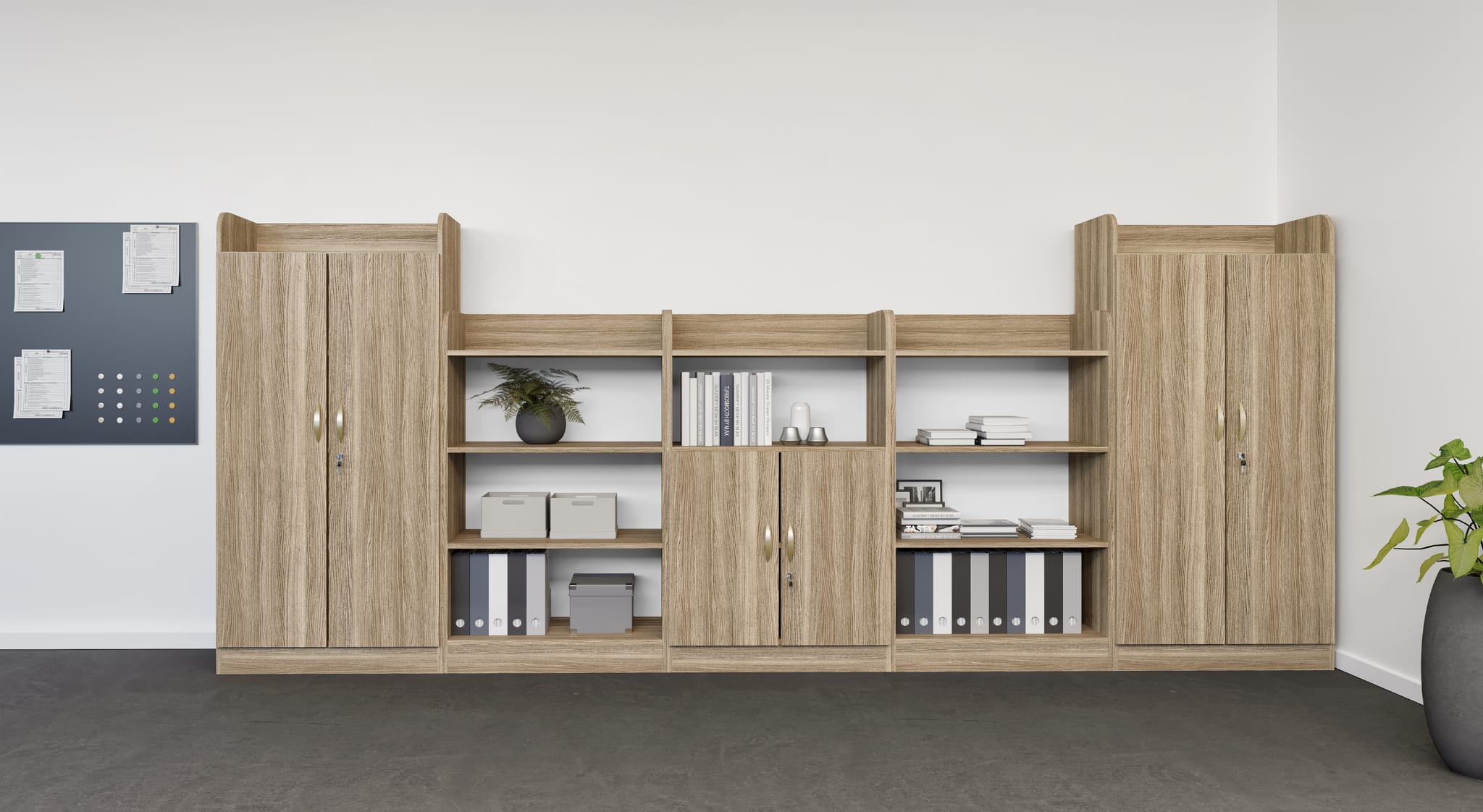 Bałtyk ZJ Wymiar (WxSxG) 1300x400x400 mm. Wykonany z płyty laminowanej 18 mm. Posiada 3 przestrzenie na dokumenty. Jedna otwarta i dwie dolne z drzwiami. Drzwi zamykane na zamek z 2 kluczykami. Istnieje możliwość zamontowania zamków z system klucza MASTER. Metalowe uchwyty.