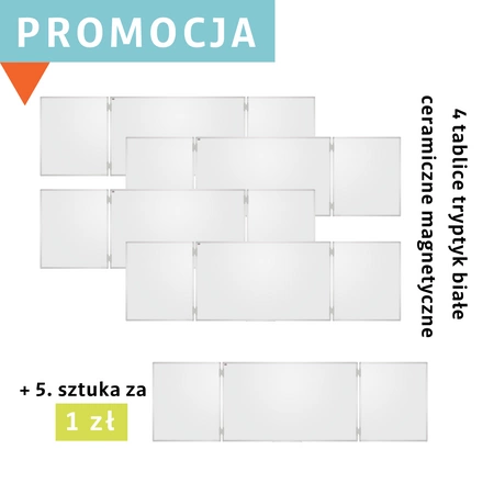 4x Tablica tryptyk biała ceramiczna magnetyczna 170/340x100 + 1x Tablica tryptyk biała ceramiczna magnetyczna 170/340x100 za 1 zł