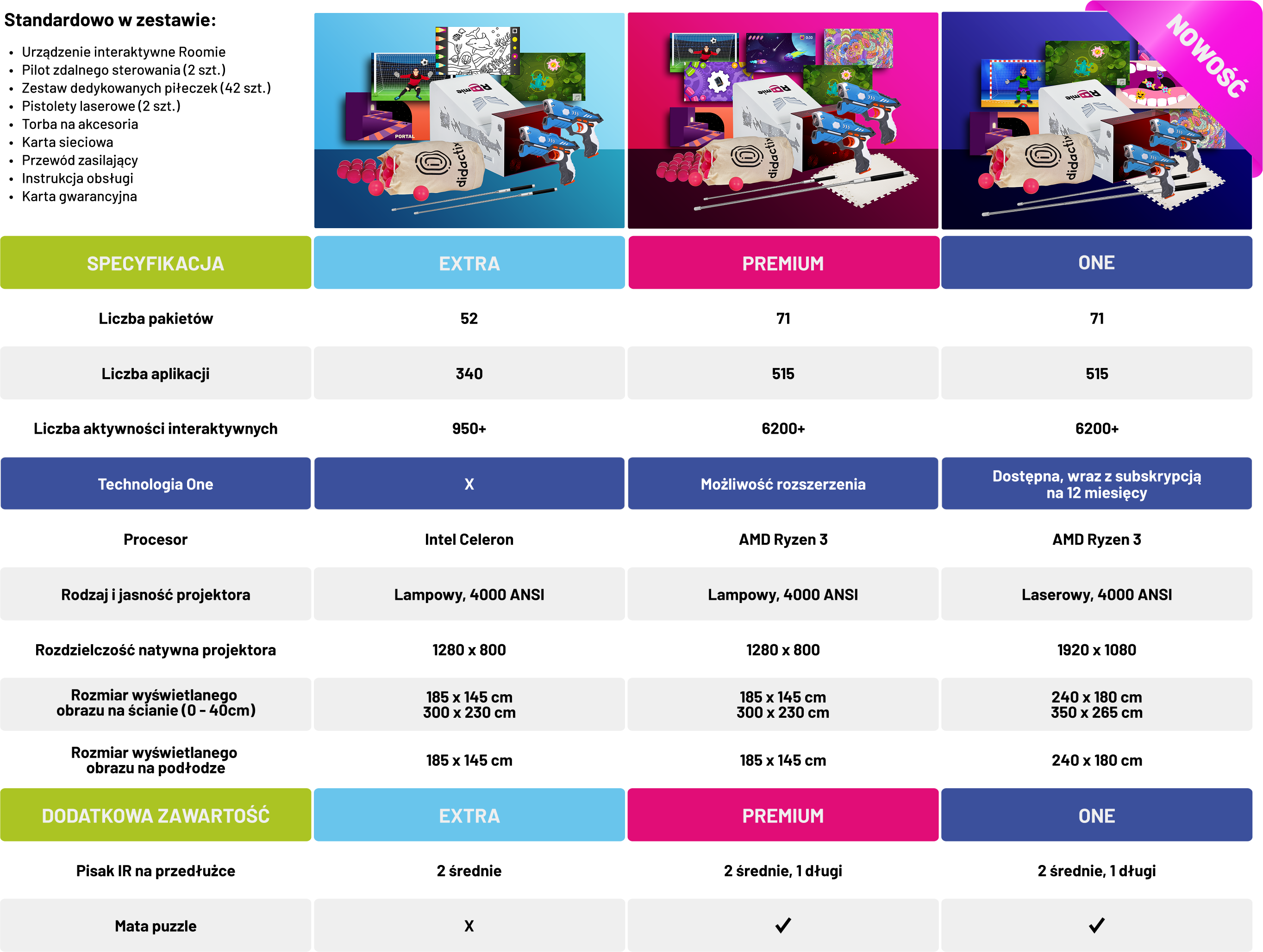 Pakiety aplikacji dostępne w zestawie z urządzeniem Roomie Premium: