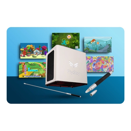 Podłoga interaktywna FlySky to produkt multimedialny pozwalający na wszechstronną naukę, terapię i zabawę użytkownikom w każdym wieku. Jest kreatywnym i innowacyjnym rozwiązaniem, które uczy przez zabawę. Jego integralną częścią jest projektor krótkoogniskowy, jednostka obliczeniowa oraz kamera wraz z dedykowanym oprogramowaniem. Za pomocą umieszczonego wewnątrz rzutnika, na podłogę wyświetlany jest obraz, który aktywują poruszający się po nim użytkownicy. Aktywny obszar doświetlany jest przez umieszczone w dolnym panelu diody LED emitujące światło w paśmie podczerwonym. W efekcie, przemieszczania się lub wykonywania gestów, wyzwalana jest zmiana obrazu, co pozwala na obsługę szerokiego spektrum gier, aplikacji oraz stron internetowych.