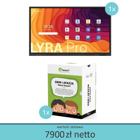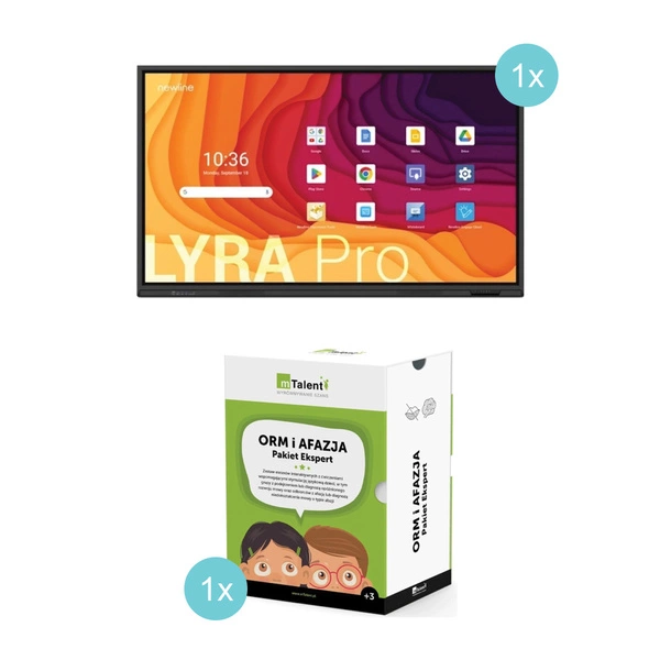 Zestaw stanowiący dodatkowe wsparcie w przygotowaniu i przeprowadzaniu zajęć w środowisku przedszkolnym, również o charakterze terapeutycznym. Należą do niego: Monitor Interaktywny Newline LYRA PRO TT-6523QA oraz mTalent ORM i Afazja – Pakiet Ekspert. Dzięki temu zestawowi możliwe jest połączenie tradycyjnych materiałów edukacyjnych i wspomagających stymulację rozwoju mowy dzieci z multimedialnymi ćwiczeniami i aktywnościami.