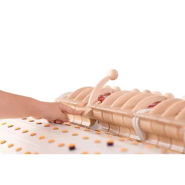 - Wyświetlacz tempa – mały ekran z boku umożliwia śledzenie zmian tempa. Pozwala to starszym dzieciom na bardziej zaawansowanie zabawy logiczne.