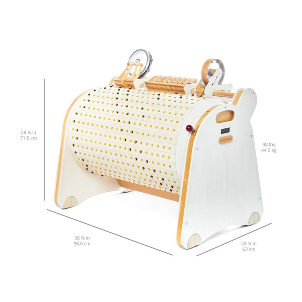 - Wnętrze – Musicon jest wyposażony w kontroler, silnik i czujnik optyczny. Czuwają one nad zachowaniem pełnej kontroli, powtarzalności rytmu oraz bezpieczeństwem.