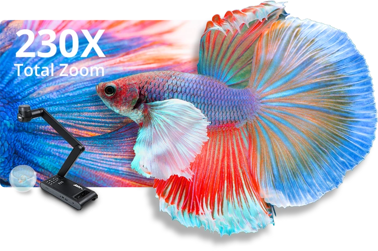 Dzięki 230-krotnemu zbliżeniu, wizualizer M70W pozwala na precyzyjne pokazanie nawet najdrobniejszych szczegółów, co jest idealne do prezentacji zarówno dokumentów, jak i trójwymiarowych obiektów.