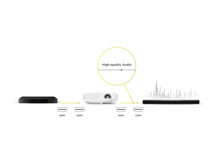 Pomiń konfigurację głośników. Dzięki wbudowanemu głośnikowi sześciennemu o mocy 10 W, LX750-4K pozwala zanurzyć się w filmach, muzyce i nie tylko z wyraźnym, wypełniającym pomieszczenie dźwiękiem od razu po wyjęciu z pudełka.