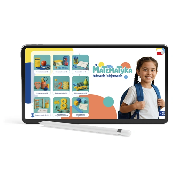 Zestaw zawiera 270 interaktywnych ćwiczeń, które rozwijają umiejętność liczenia, wzmacniają koncentrację i pomagają zrozumieć zasady działań arytmetycznych. Każde dziecko pracuje z indywidualnie dopasowanymi zadaniami, co sprawia, że lekcje są angażujące, zrównoważone i dostosowane do poziomu uczniów.