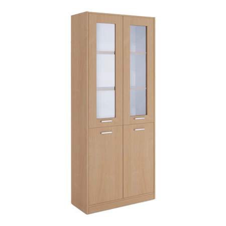 Drzwiczka zamykane na zamek meblowy. Górne drzwiczka przeszklone.