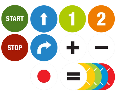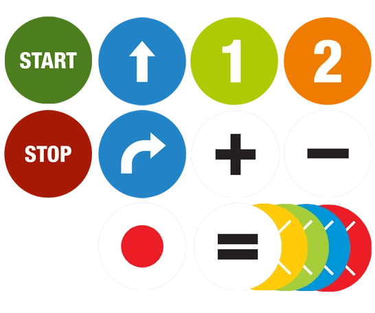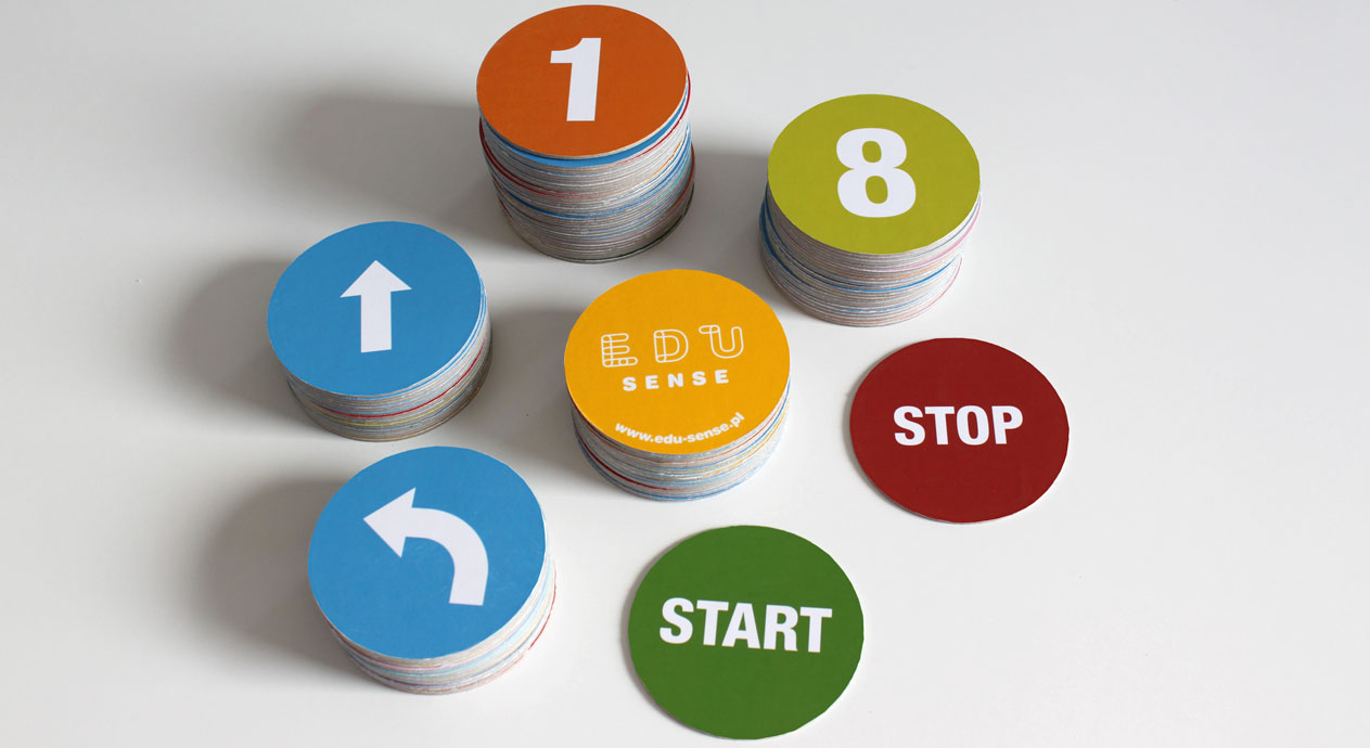 W skład gotowego zestawu krążków wchodzą komendy ruchu - strzałki kierunkowe, obroty, start, stop, oraz cyfry umieszczone na kołach w 9 kolorach. Zestaw zawiera także znaki działań matematycznych - plus, minus, dzielenie, mnożenie, równe, większe, mniejsze oraz figury geometryczne umieszczone na kołach w 9 kolorach. Każdy komplet krążków to możliwość aranżowania wielu aktywności okołoprogramistycznych, takich jak: tworzenie offlinowych kodów - dróg, wprowadzanie aplikacji "kodable", "lightbot" itp, gry rozwijające kompetencje matematyczne, sudoku, memory, rytmy, "dyktanda graficzne" na dużym formacie, wierszyki - instrukcje do kodowania. Zorganizowanie powyższych zabaw nie będzie już wymagało długiego wycinania i laminowania poszczególnych elementów. Wielkość krążków i ich kolorystyka idealnie współgrają z matą do kodowania "Kodowanie na dywanie", a zabawy dydaktyczne z ich wykorzystaniem można znaleźć w książce "Kodowanie na dywanie cz. II. Różne kompetencje, różne edukacje".