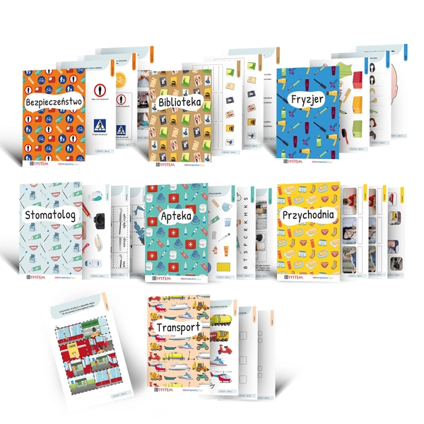 - Poruszanie w materiałach wielu tematów daje możliwość na rozwijanie pewnych zainteresowań, np. dotyczących zawodów czy miejsc użyteczności publicznej.