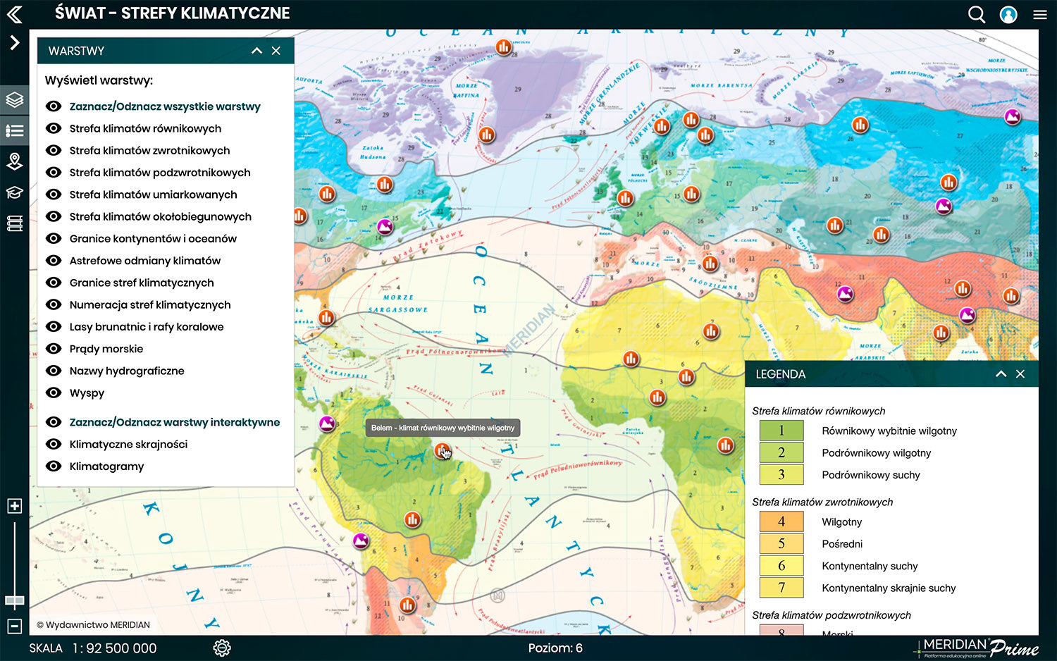 Mapy wzbogacone są w treści interaktywne oraz obudowę metodyczną: zadania, ćwiczenia oraz bibliografię pozwalającą uzupełnić i pogłębić wiedzę w zakresie zagadnień omawianych na mapie. Zawartość platformy jest zgodna z nową podstawą programową i współpracuje z każdym podręcznikiem. Wypróbuj to nadzwyczaj wygodne, elastyczne i nowoczesne narzędzie dydaktyczne.