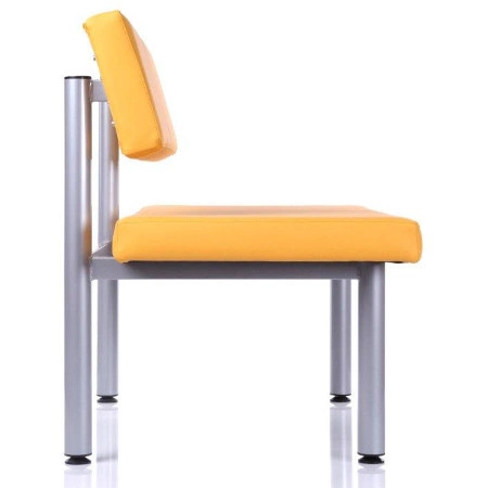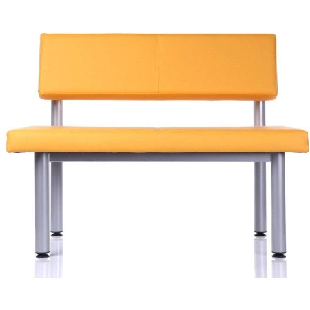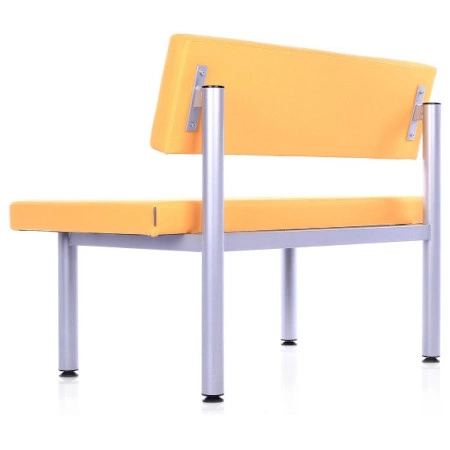 Nowoczesna ławka do poczekalni lub na korytarz dla dwóch osób. Ławka o miękkim tapicerowanym siedzisku i oparciu. Standardowo stelaż malowany proszkowo na kolor czarny (RAL 9005) lub alu - siwy (RAL 9006). Ławka tapicerowana w różnych kolorach. Ławka dwuosobowa wyposażona w regulowane stopki niwelujące nierówności podłoża.