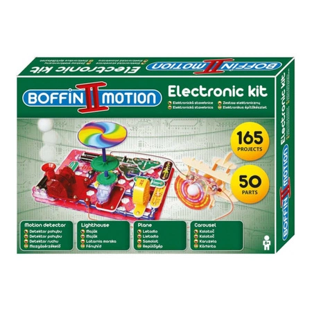 - Elektroniczny zestaw konstrukcyjny Boffin Ii Motion zawiera 50 elementów.