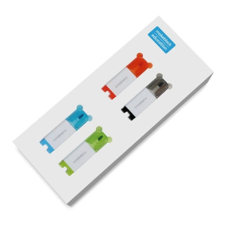 - Kolorowe markery umożliwiają mTiny rysowanie liter, kształtów i cyfr. Znajdują się na standardowym wyposażeniu robota mTiny Discover Kit.